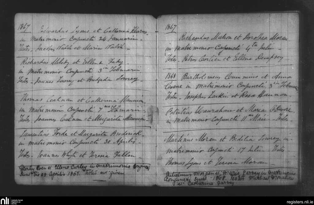 Mullagh; County of Galway; Diocese of Clonfert. Marriages, Jan. 1867 to July 1868
