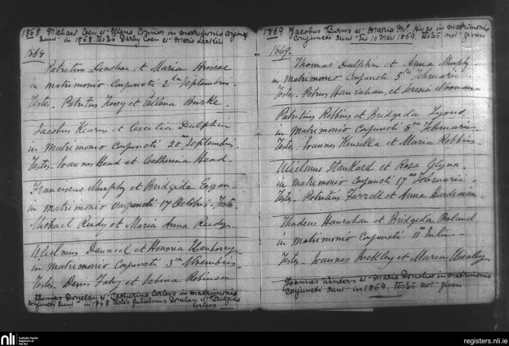 Mullagh; County of Galway; Diocese of Clonfert. Marriages, Sep. 1868 to July 1869