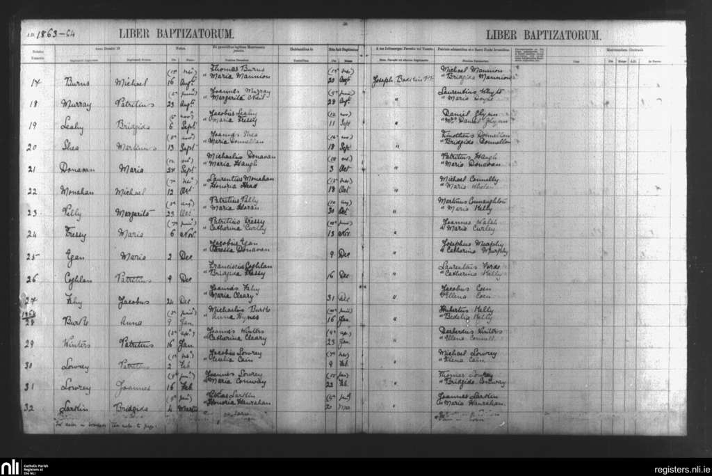 Mullagh; County of Galway; Diocese of Clonfert. Baptisms, Aug. 1863 to Mar. 1864