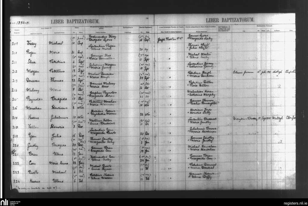 Mullagh; County of Galway; Diocese of Clonfert. Baptisms, Aug. 1870 to Feb. 1871