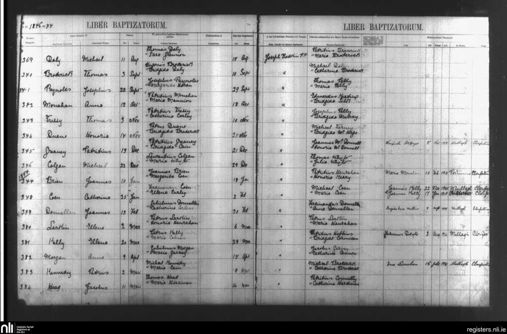 Mullagh; County of Galway; Diocese of Clonfert. Baptisms, Aug. 1876 to May 1877