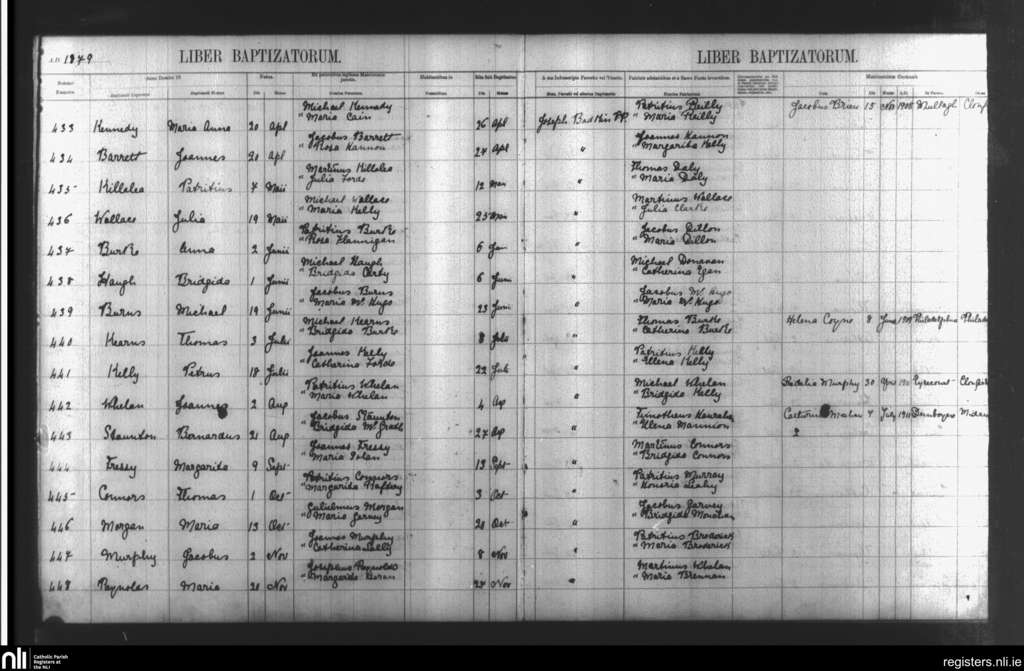 Mullagh; County of Galway; Diocese of Clonfert. Baptisms, Apr. 1879 to Nov. 1879