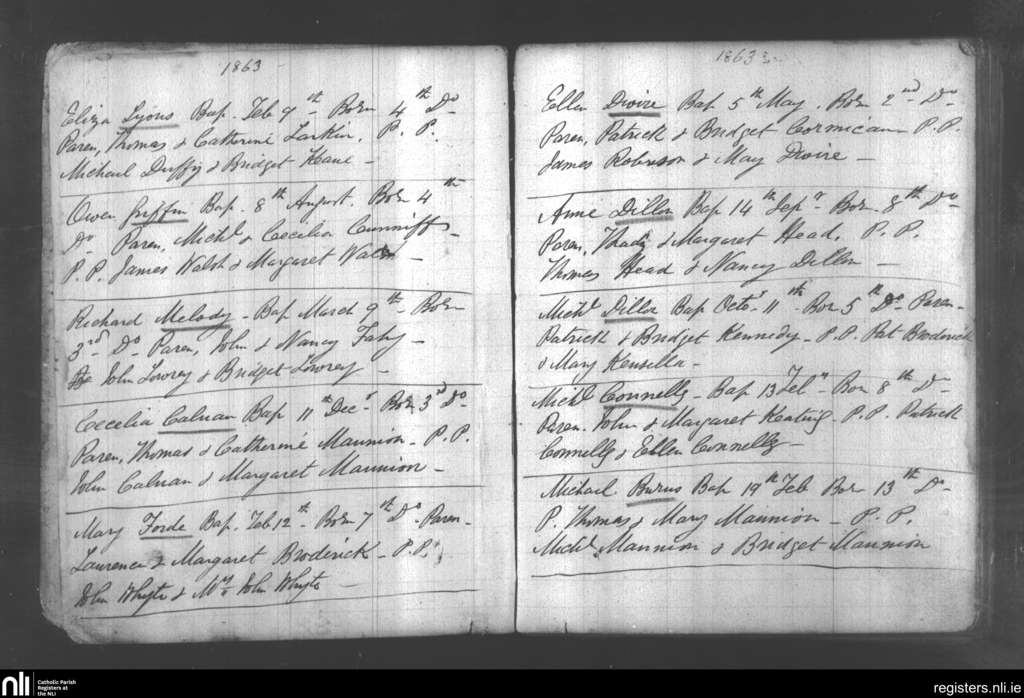 Mullagh; County of Galway; Diocese of Clonfert. Baptisms, Feb. 1863 to Dec. 1863