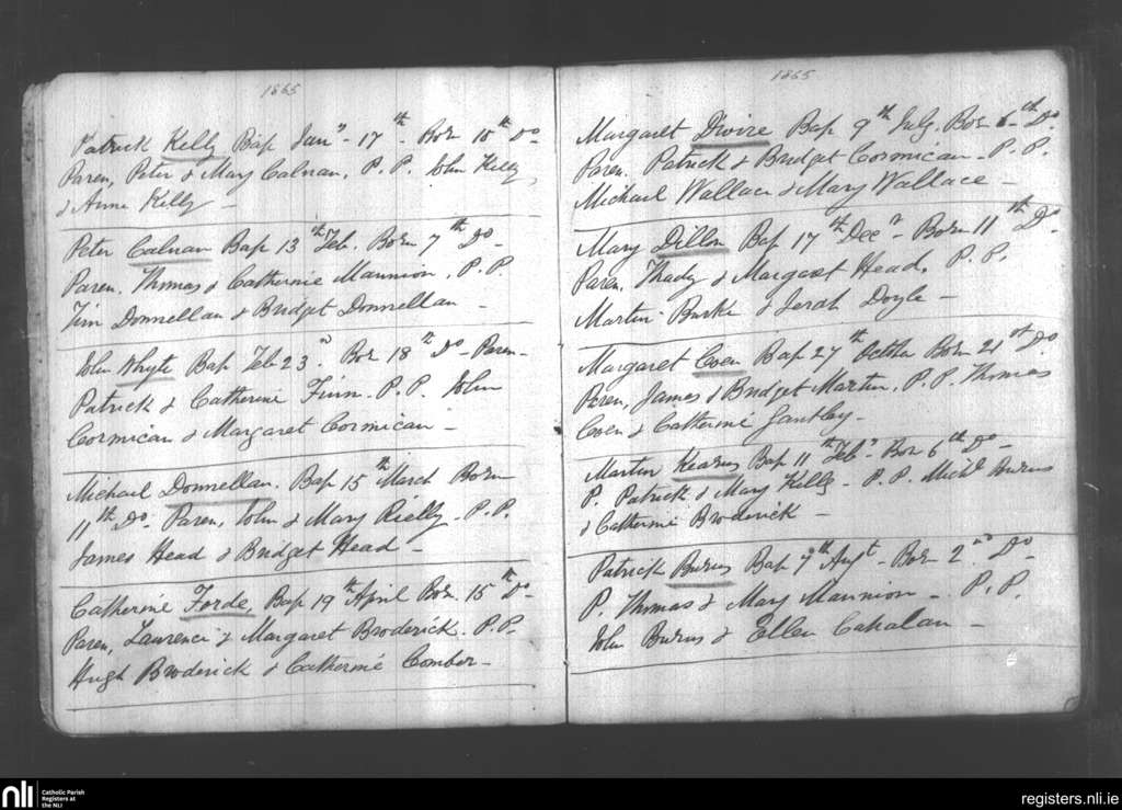Mullagh; County of Galway; Diocese of Clonfert. Baptisms, Jan. 1865 to Dec. 1865