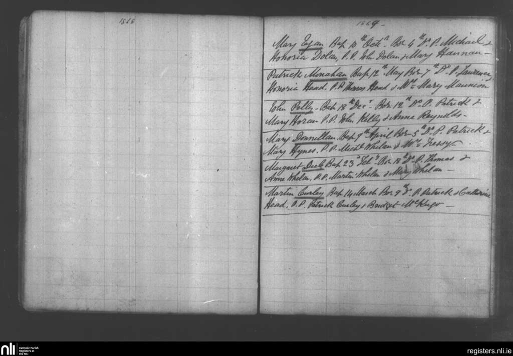 Mullagh; County of Galway; Diocese of Clonfert. Baptisms, Feb. 1869 to Dec. 1869