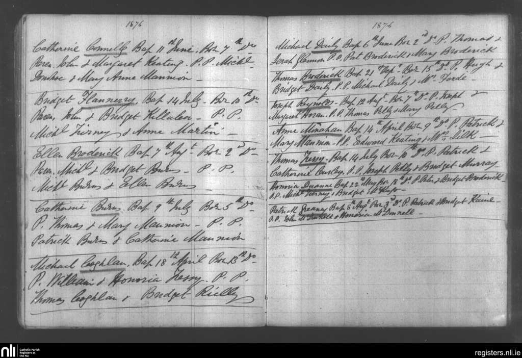 Mullagh; County of Galway; Diocese of Clonfert. Baptisms, Apr. 1876 to Sep. 1876