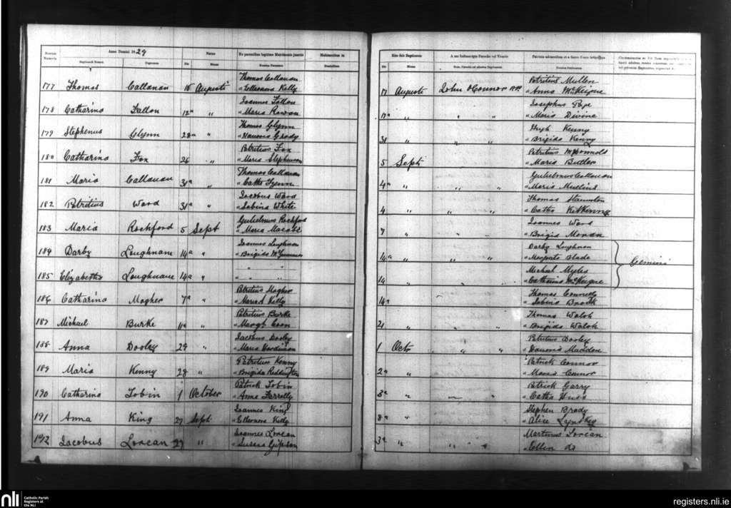 Aughrim; County of Galway; Diocese of Clonfert. Baptisms, July 1833 to Sep. 1833