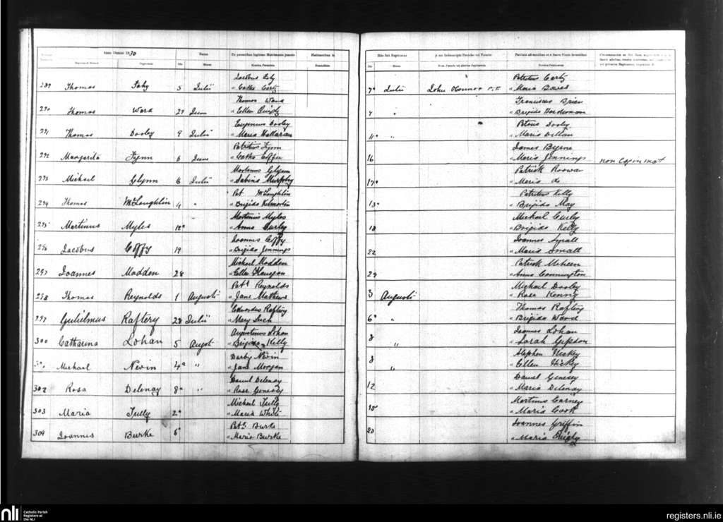 Aughrim; County of Galway; Diocese of Clonfert. Baptisms, June 1834 to Aug. 1834