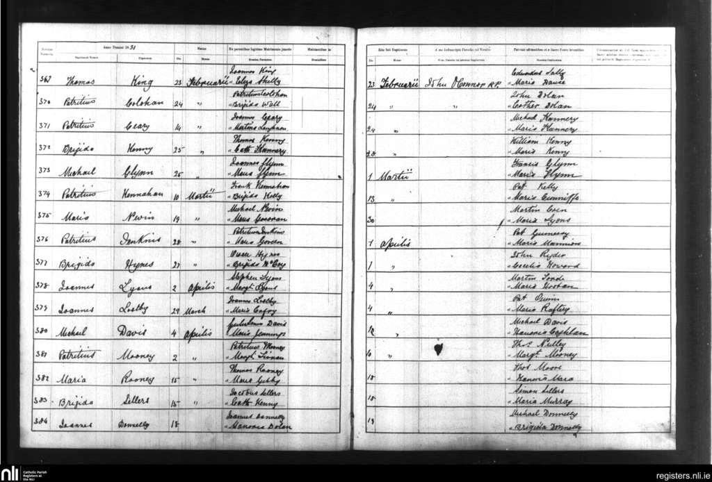 Aughrim; County of Galway; Diocese of Clonfert. Baptisms, Feb. 1835 to Mar. 1835