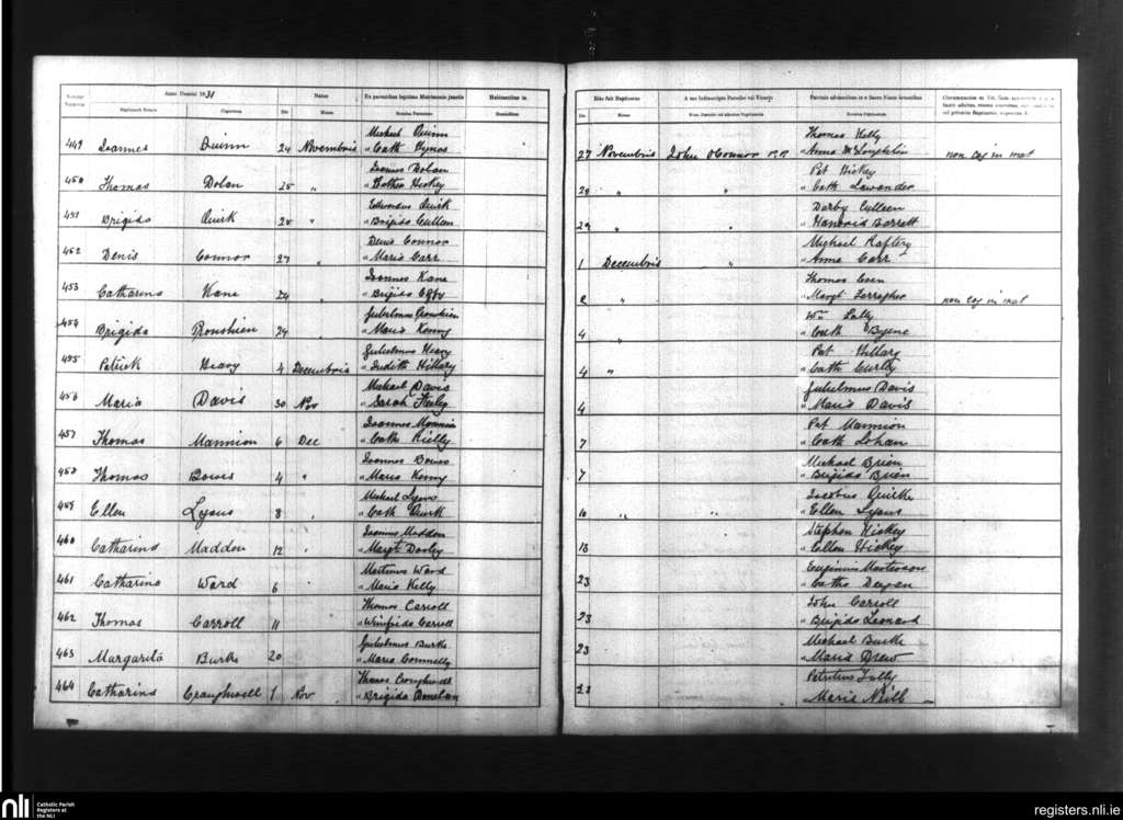 Aughrim; County of Galway; Diocese of Clonfert. Baptisms, Oct. 1835 to Nov. 1835