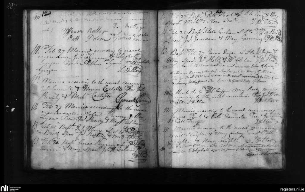 Ballinasloe; County of Roscommon, Galway; Diocese of Clonfert. Baptisms, Marriages, Feb. 1821 to Mar. 1821
