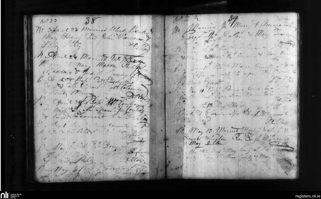 Ballinasloe; County of Roscommon, Galway; Diocese of Clonfert. Baptisms, Marriages, Apr. 1822 to May 1822