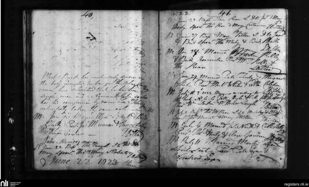 Ballinasloe; County of Roscommon, Galway; Diocese of Clonfert. Baptisms, Marriages, May 1822 to June 1822