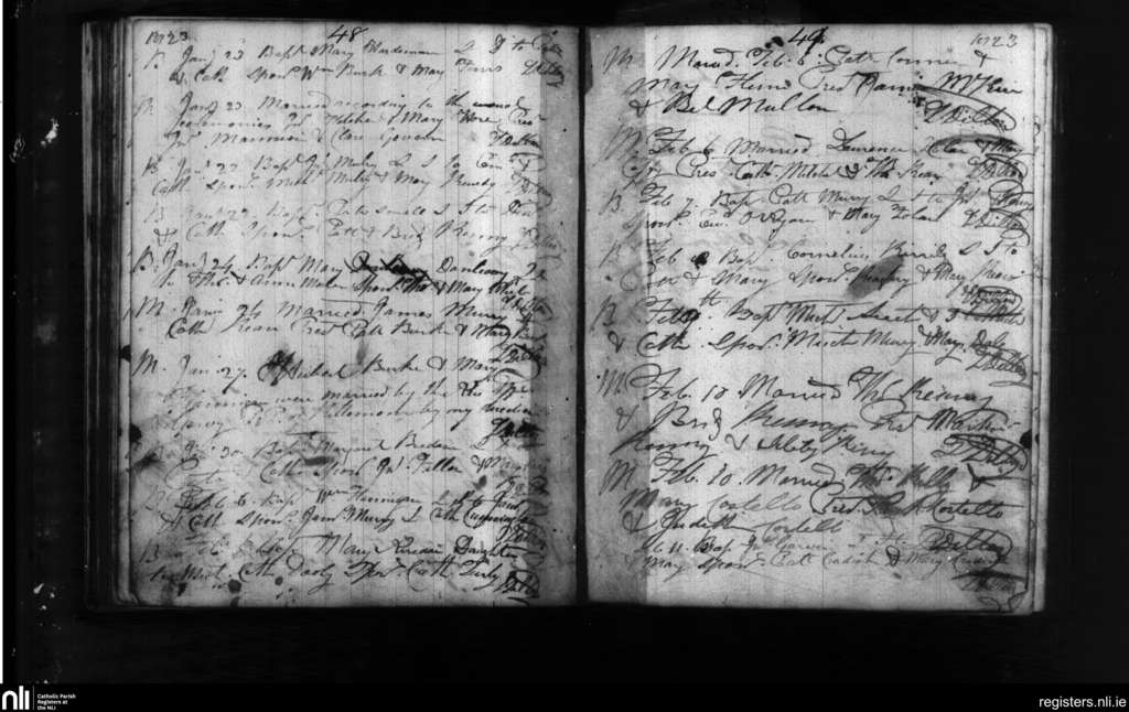 Ballinasloe; County of Roscommon, Galway; Diocese of Clonfert. Baptisms, Marriages, Jan. 1823 to Feb. 1823