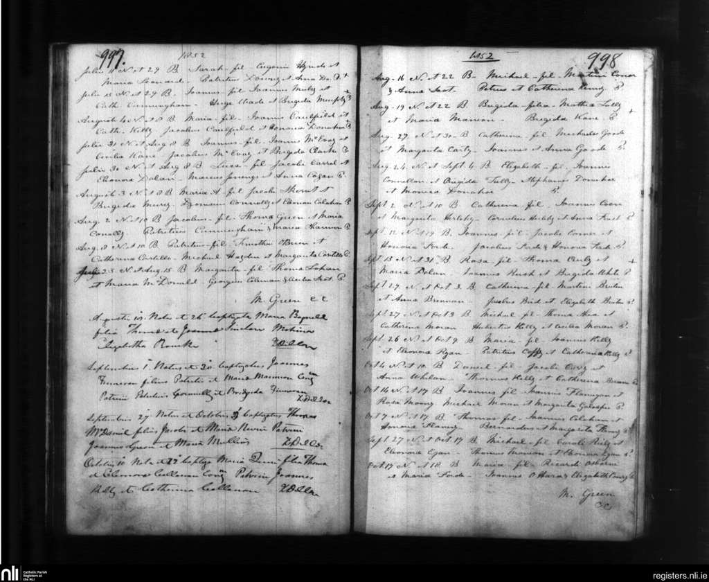 Ballinasloe; County of Galway, Roscommon; Diocese of Clonfert. Baptisms, July 1852 to Oct. 1852