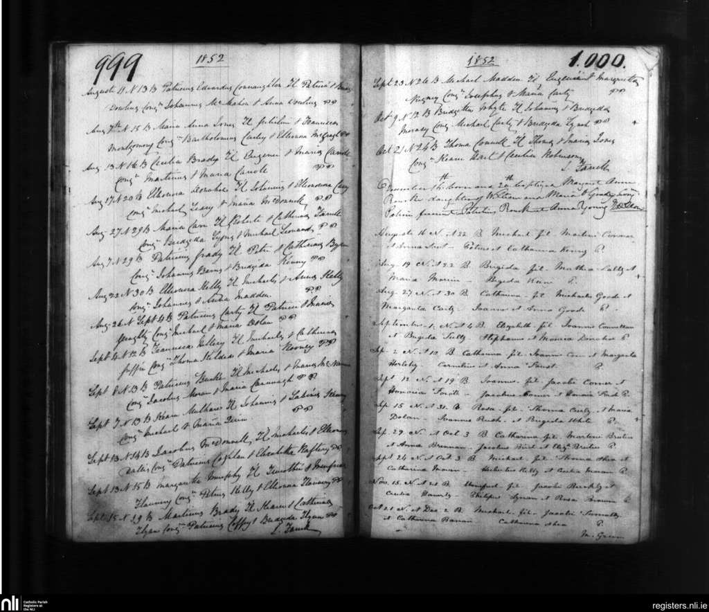 Ballinasloe; County of Galway, Roscommon; Diocese of Clonfert. Baptisms, Aug. 1852 to Nov. 1852