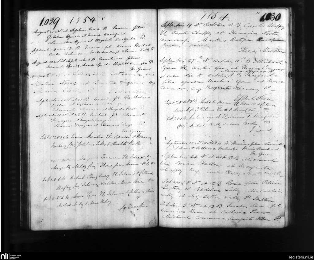 Ballinasloe; County of Galway, Roscommon; Diocese of Clonfert. Baptisms, Sep. 1854 to Oct. 1854