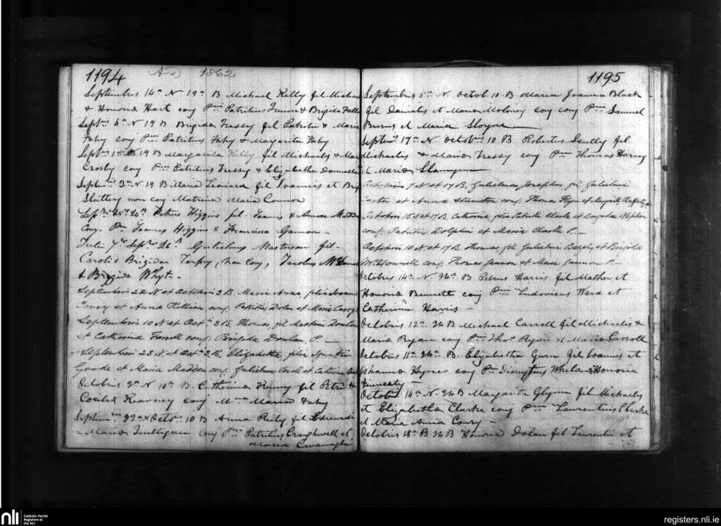 Ballinasloe; County of Galway, Roscommon; Diocese of Clonfert. Baptisms, Sep. 1862 to Oct. 1862