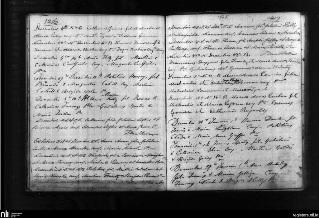Ballinasloe; County of Galway, Roscommon; Diocese of Clonfert. Baptisms, Dec. 1863 to Jan. 1864