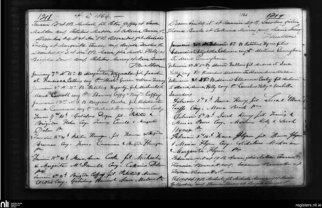 Ballinasloe; County of Galway, Roscommon; Diocese of Clonfert. Baptisms, Jan. 1864 to Feb. 1864