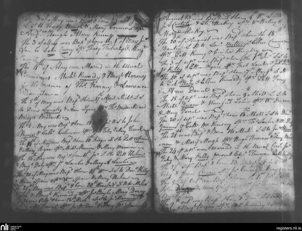 Leitrim; County of Galway; Diocese of Clonfert. Baptisms, Marriages, May 1815 to Oct. 1815