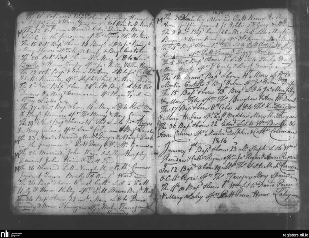 Leitrim; County of Galway; Diocese of Clonfert. Baptisms, Marriages, Oct. 1815 to Jan. 1816