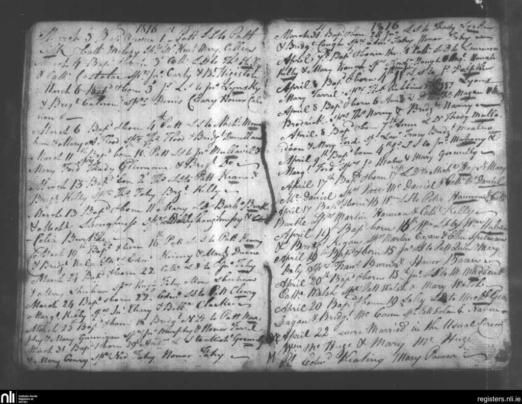 Leitrim; County of Galway; Diocese of Clonfert. Baptisms, Marriages, Mar. 1816 to Apr. 1816