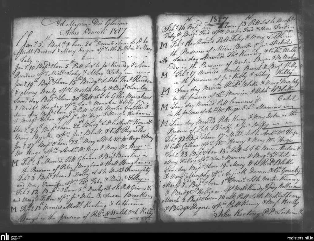 Leitrim; County of Galway; Diocese of Clonfert. Baptisms, Marriages, Deaths, Jan. 1817 to Mar. 1817