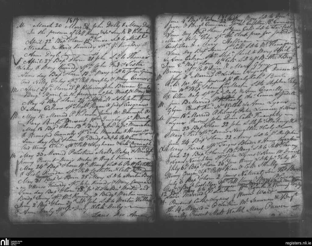 Leitrim; County of Galway; Diocese of Clonfert. Baptisms, Marriages, Mar. 1817 to July 1817
