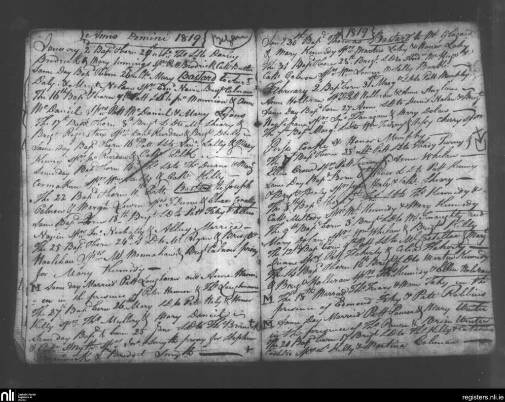 Leitrim; County of Galway; Diocese of Clonfert. Baptisms, Marriages, Deaths, Jan. 1819 to Feb. 1819