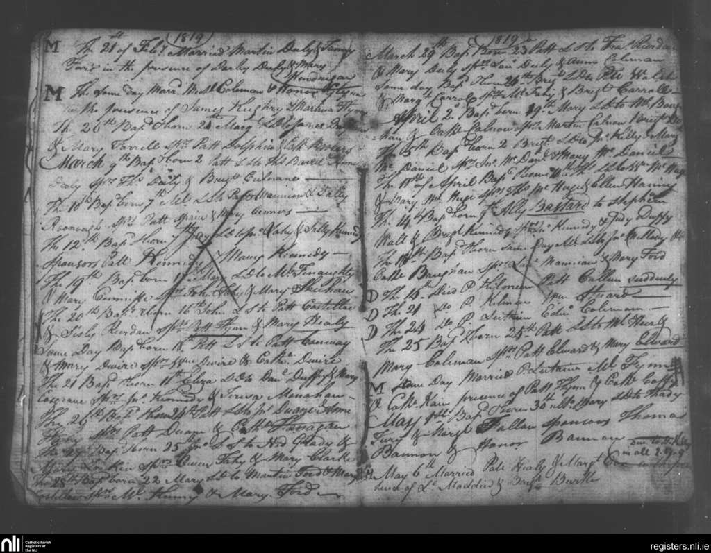 Leitrim; County of Galway; Diocese of Clonfert. Baptisms, Marriages, Deaths, Feb. 1819 to May 1819