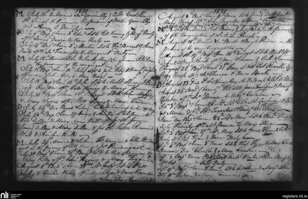 Leitrim; County of Galway; Diocese of Clonfert. Baptisms, Marriages, Deaths, July 1821 to Sep. 1821