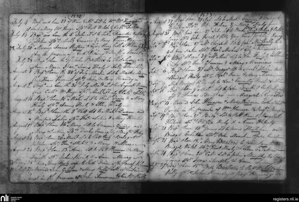 Leitrim; County of Galway; Diocese of Clonfert. Baptisms, Marriages, Deaths, July 1823 to Sep. 1823