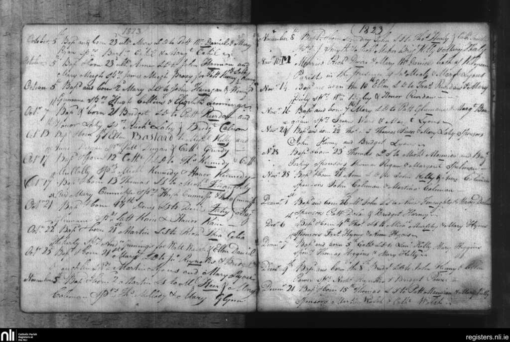 Leitrim; County of Galway; Diocese of Clonfert. Baptisms, Marriages, Deaths, Oct. 1823 to Dec. 1823