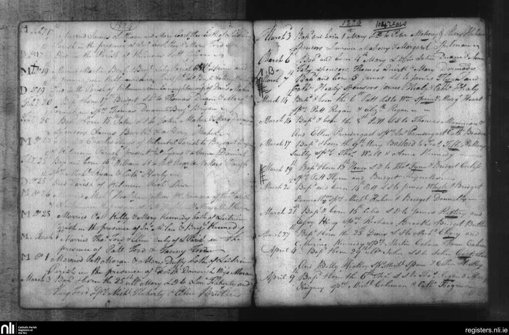 Leitrim; County of Galway; Diocese of Clonfert. Baptisms, Marriages, Deaths, Feb. 1824 to Apr. 1824
