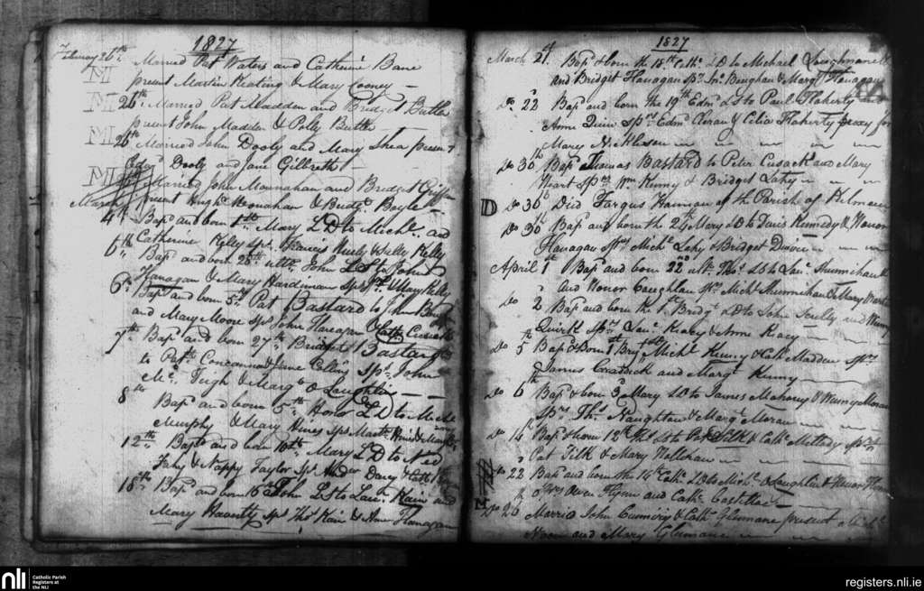 Leitrim; County of Galway; Diocese of Clonfert. Baptisms, Marriages, Deaths, Feb. 1827 to Apr. 1827