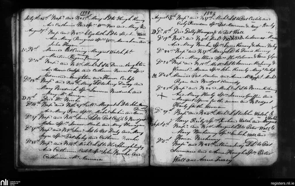 Leitrim; County of Galway; Diocese of Clonfert. Baptisms, Marriages, Deaths, July 1828 to Sep. 1828