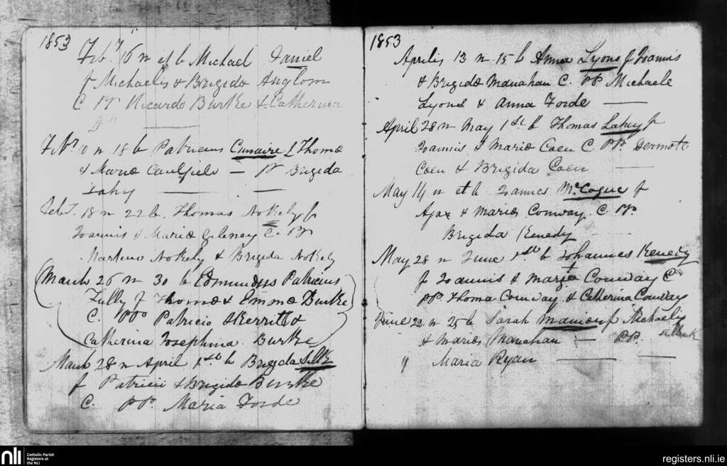 Leitrim; County of Galway; Diocese of Clonfert. Baptisms, Feb. 1853 to June 1853