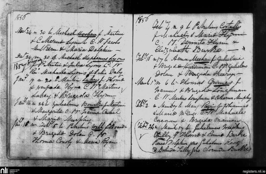 Leitrim; County of Galway; Diocese of Clonfert. Baptisms, Dec. 1855 to Mar. 1856