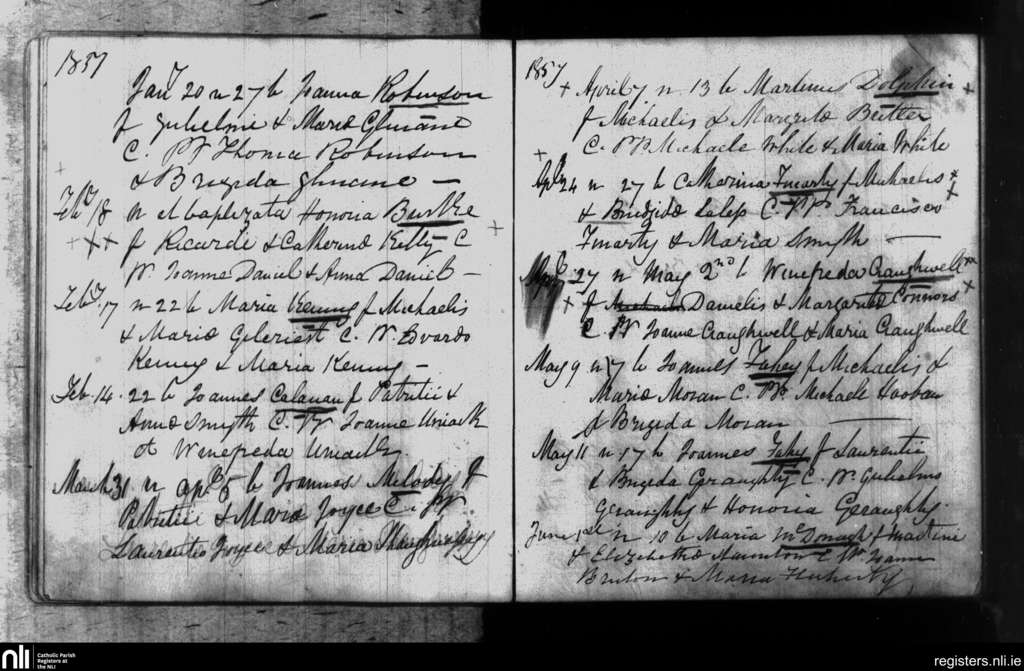 Leitrim; County of Galway; Diocese of Clonfert. Baptisms, Jan. 1857 to June 1857