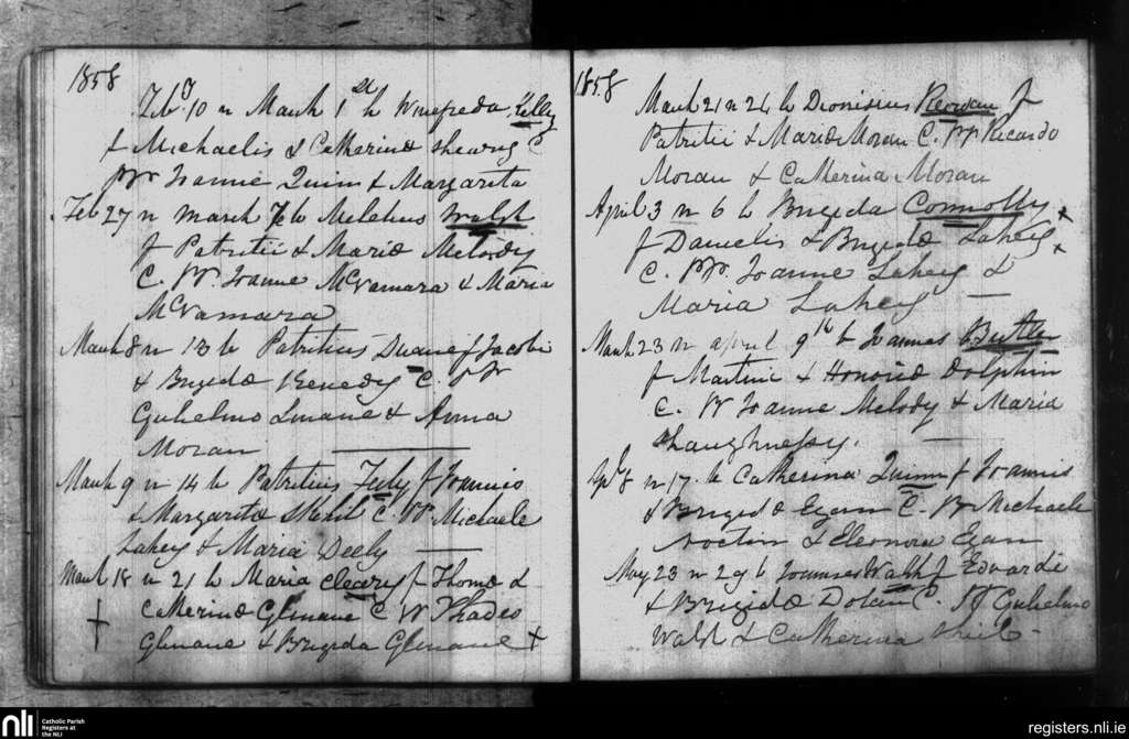 Leitrim; County of Galway; Diocese of Clonfert. Baptisms, Mar. 1858 to May 1858