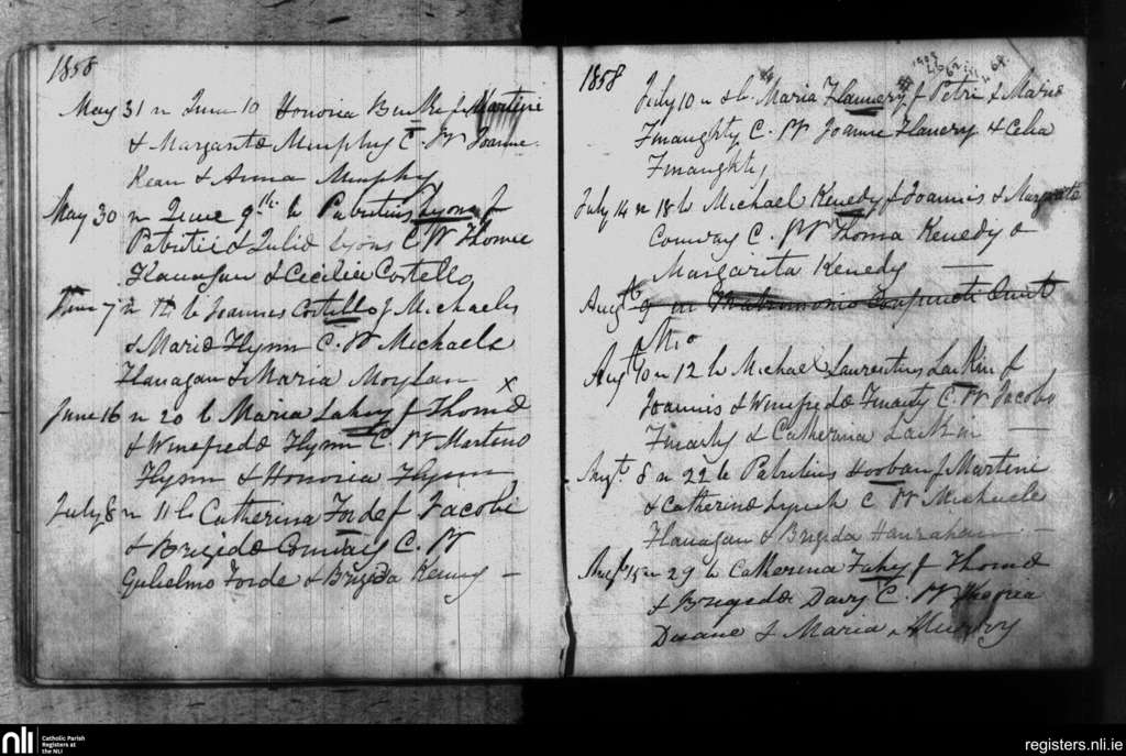 Leitrim; County of Galway; Diocese of Clonfert. Baptisms, June 1858 to Aug. 1858