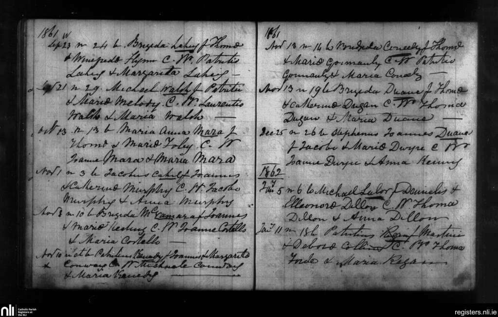 Leitrim; County of Galway; Diocese of Clonfert. Baptisms, Sep. 1861 to Jan. 1862