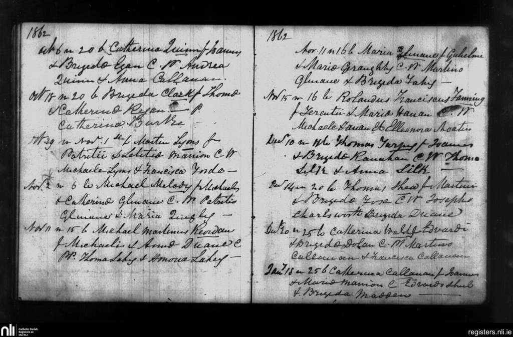 Leitrim; County of Galway; Diocese of Clonfert. Baptisms, Oct. 1862 to Jan. 1863