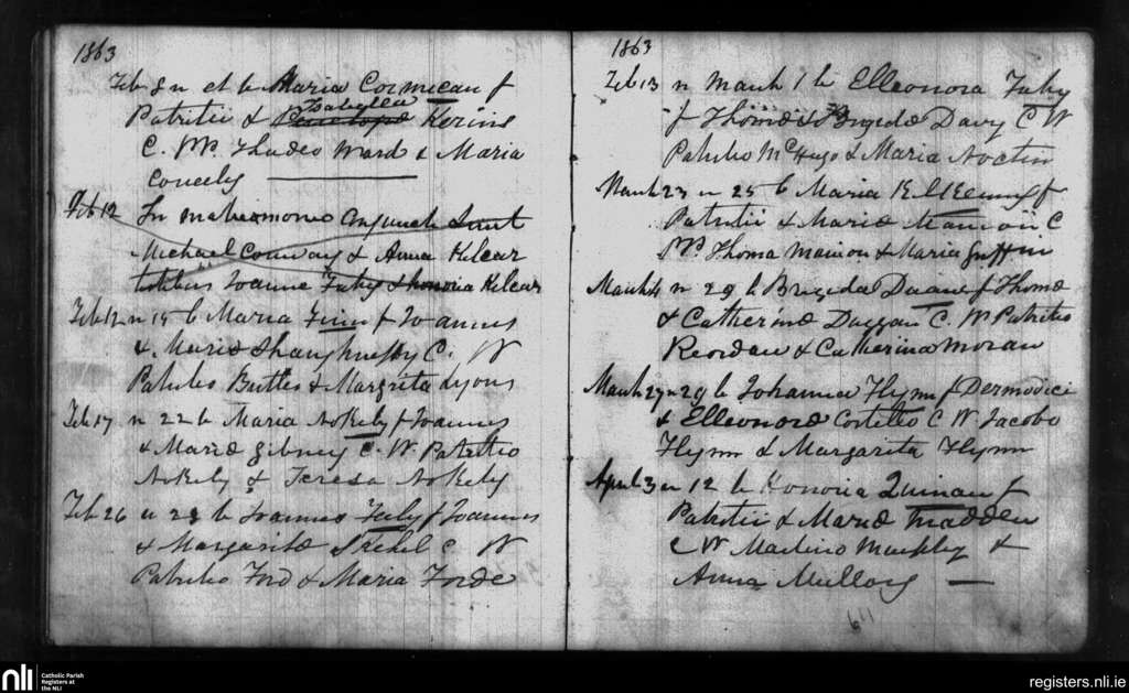 Leitrim; County of Galway; Diocese of Clonfert. Baptisms, Feb. 1863 to Apr. 1863