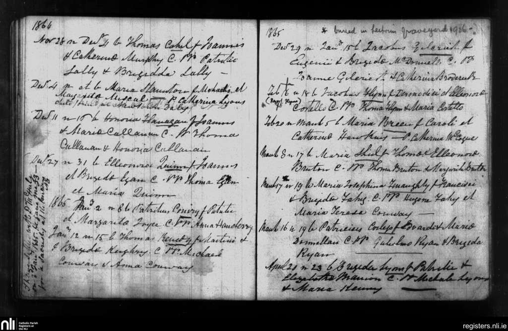 Leitrim; County of Galway; Diocese of Clonfert. Baptisms, Dec. 1864 to Apr. 1865