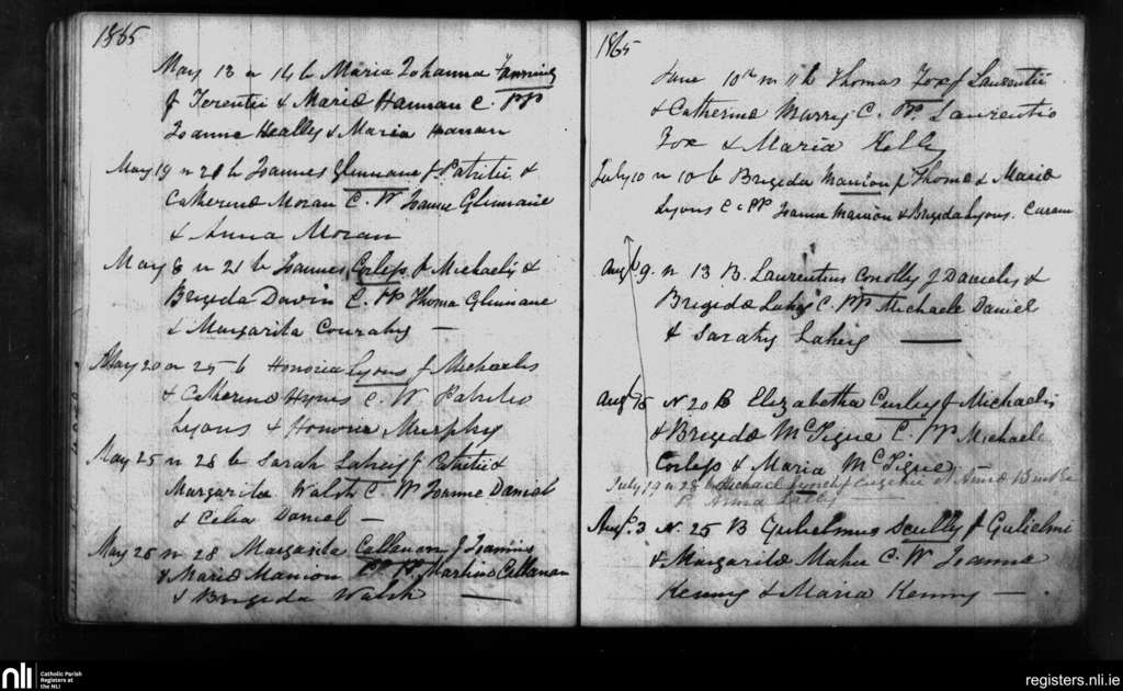 Leitrim; County of Galway; Diocese of Clonfert. Baptisms, May 1865 to Aug. 1865