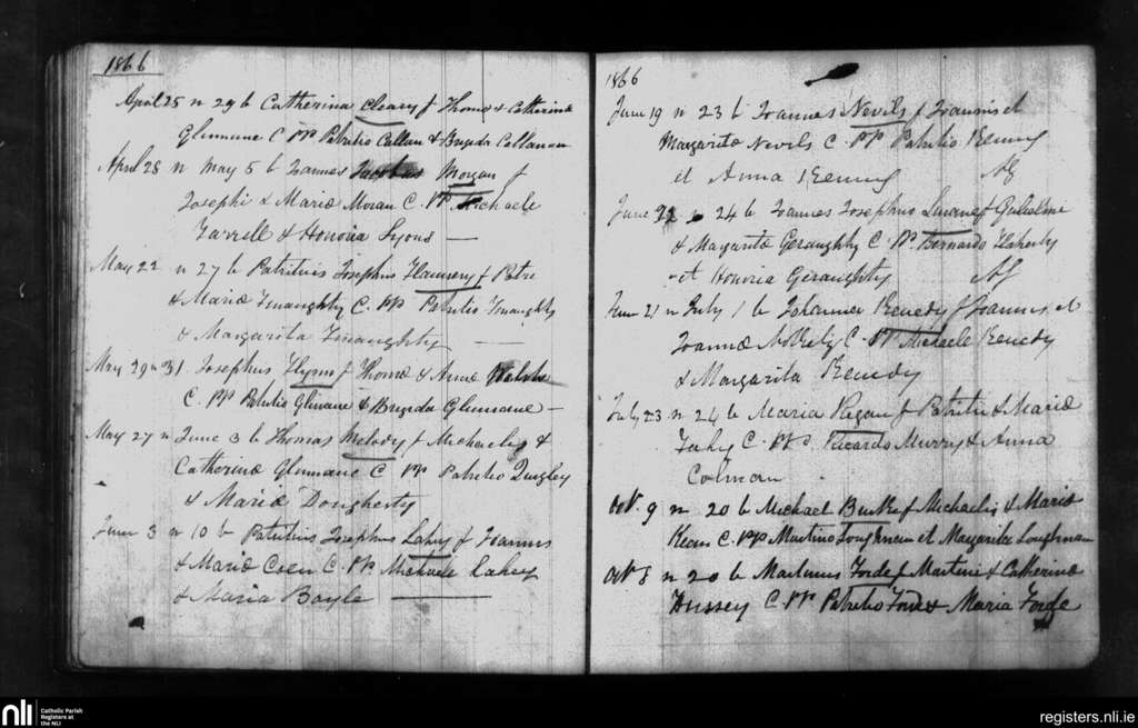 Leitrim; County of Galway; Diocese of Clonfert. Baptisms, Apr. 1866 to Oct. 1866