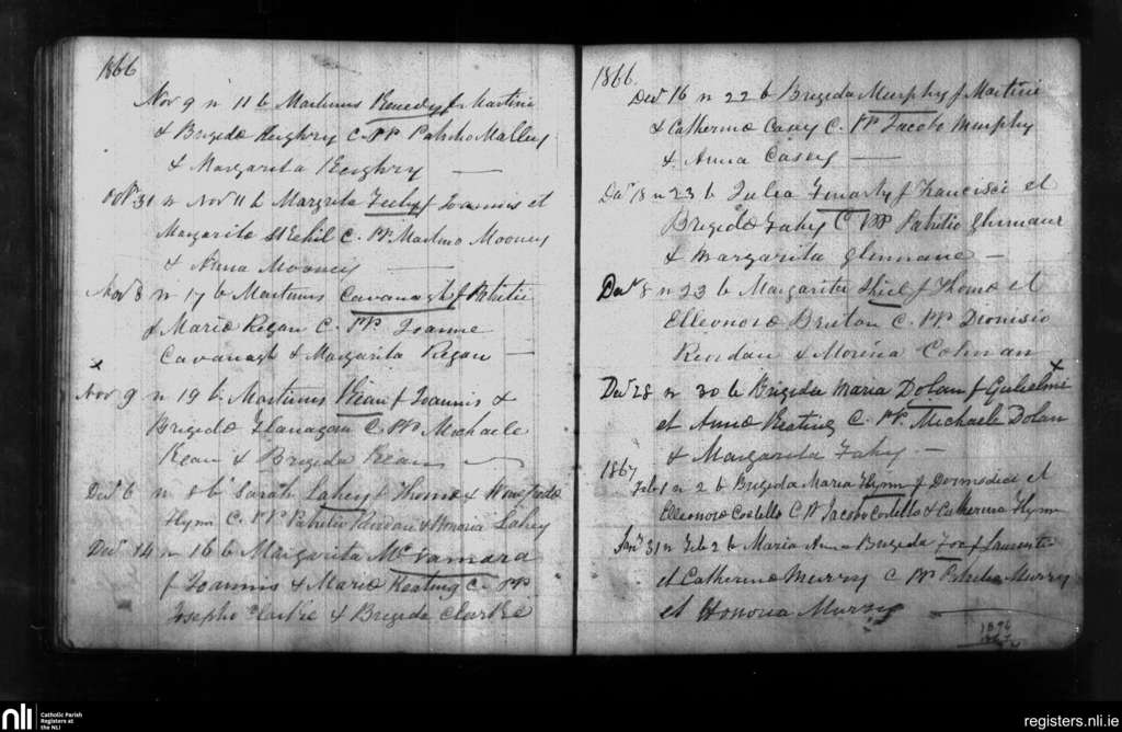 Leitrim; County of Galway; Diocese of Clonfert. Baptisms, Nov. 1866 to Feb. 1867