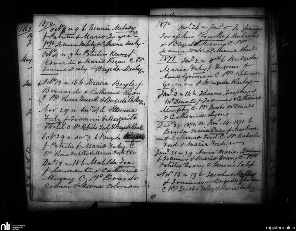 Leitrim; County of Galway; Diocese of Clonfert. Baptisms, Oct. 1870 to Nov. 1871